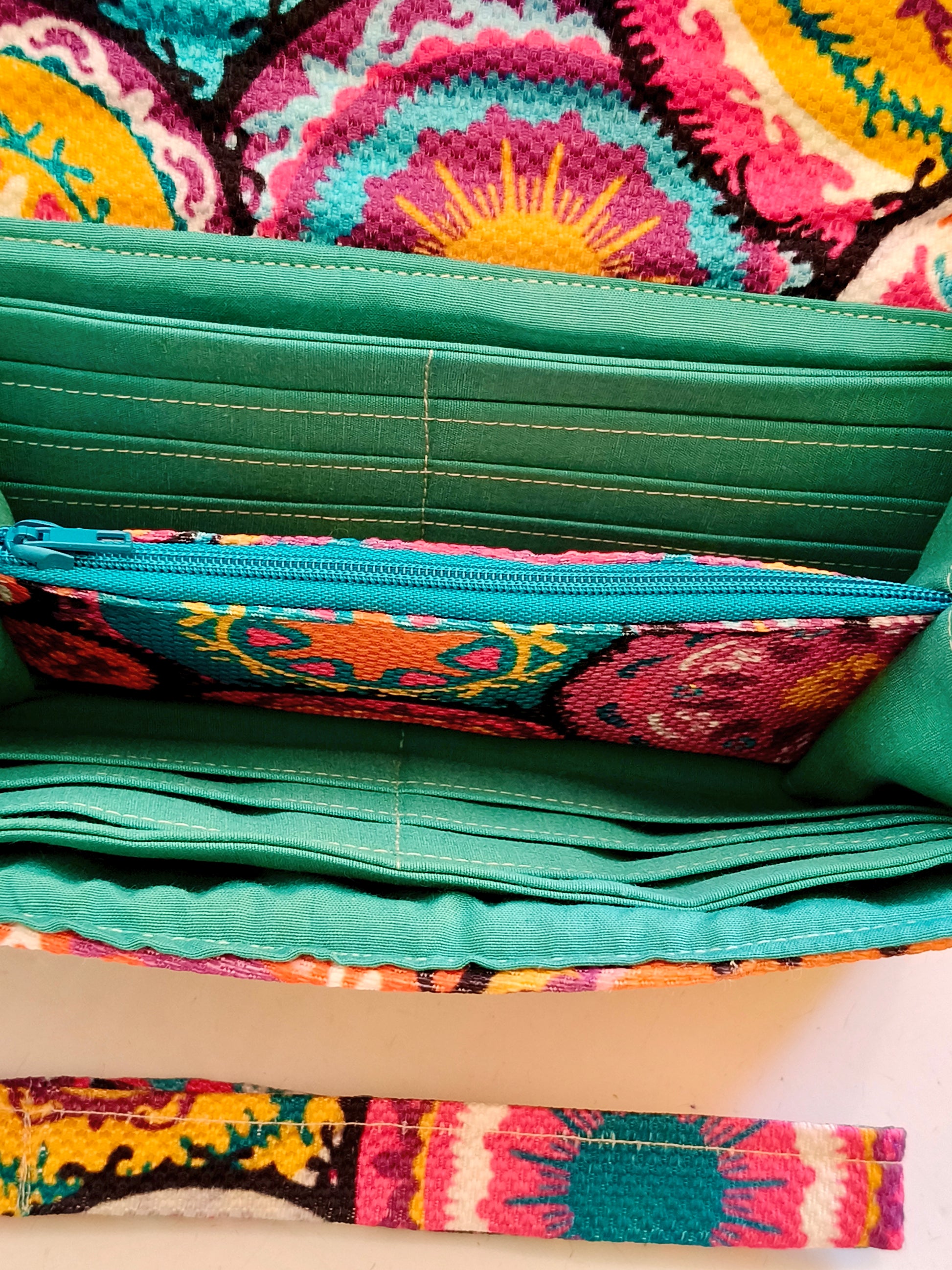 Elevate your look with this middle-sized wallet! Not only does it provide ample room for your cards with its six slots and two small pockets, but the adjustable handle allows you to take your style to new heights! Plus, the medium-sized pocket is perfect for stowing those pesky coins. Talk about convenience!